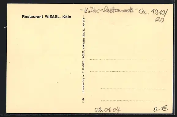 AK Köln, Strassenpartie am Restaurant Wiesel
