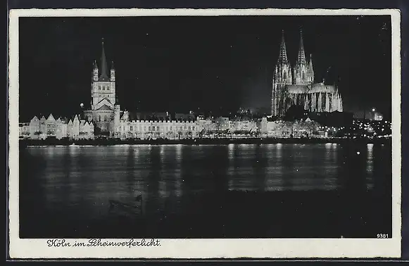 AK Köln, Teilansicht mit Dom im Scheinwerferlicht