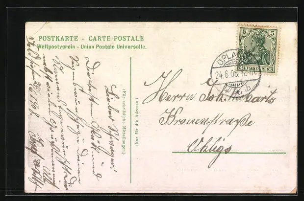 alte Ansichtskarte, gelaufen 1908, Eckknick re. oben, guter Zustand