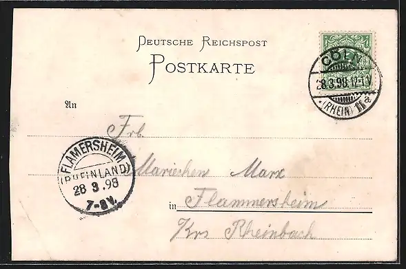 alte Ansichtskarte, gelaufen 1898, guter Zustand
