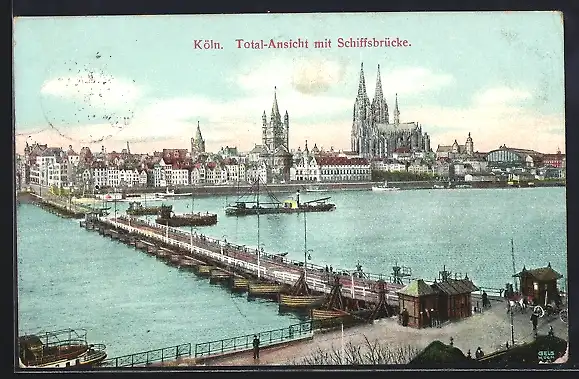 AK Köln, Totalansicht mit Schiffsbrücke