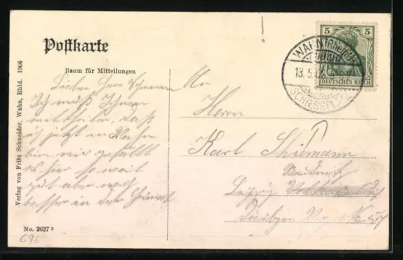 alte Ansichtskarte, gelaufen 1906, guter Zustand