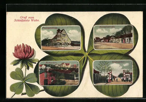 AK Köln-Wahn, Schiessplatz, Postgebäude, Kaiserstrasse und Baracken
