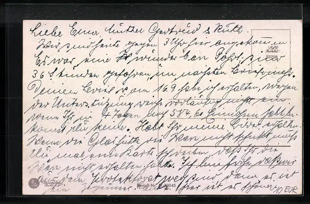 Personenbezogene Daten auf der Rückseite der Karte wurden durch blauen Textmarker unkenntlich gemacht. Die blauen Stellen sind auf die Vorderseite durchgeweicht und wirken sich negativ auf das Postkartenfoto aus