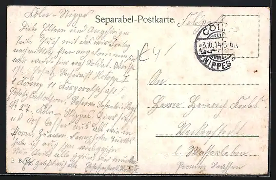 alte Ansichtskarte, gelaufen 1914, Eckknick li. oben, guter Zustand