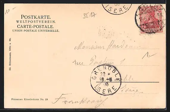 alte Ansichtskarte, gelaufen 1905, Stempelspur, Eckknick links unten, guter Zustand