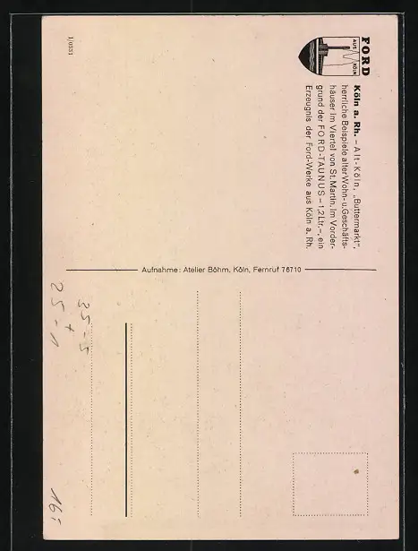 AK Köln a. Rh., Auto-Werbung Ford Taunus, Strassenpartie am Buttermarkt