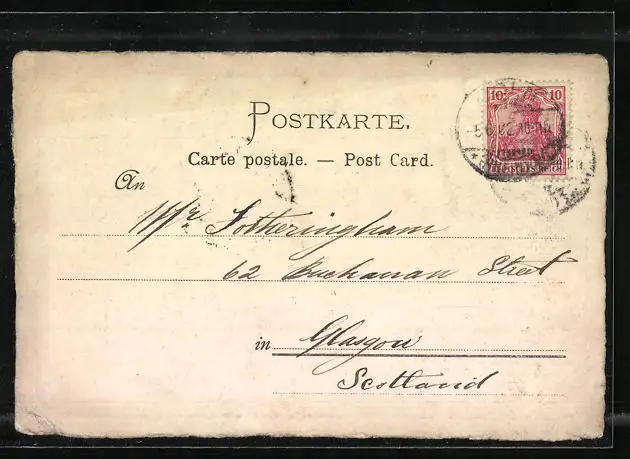 alte Ansichtskarte, gelaufen 1902, Eckknicke unten und rechts, guter Zustand