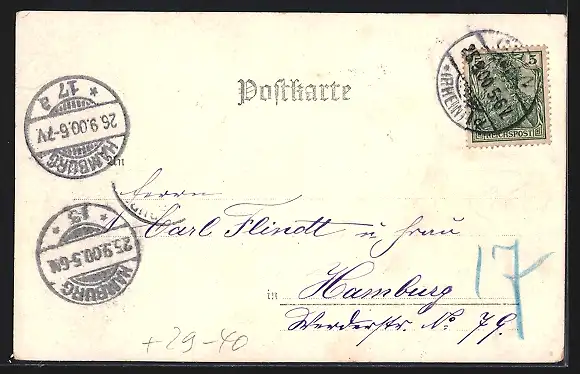 alte Ansichtskarte, gelaufen 1900, guter Zustand