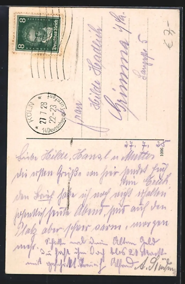alte Ansichtskarte, gelaufen 1928, Stempelspur, guter Zustand