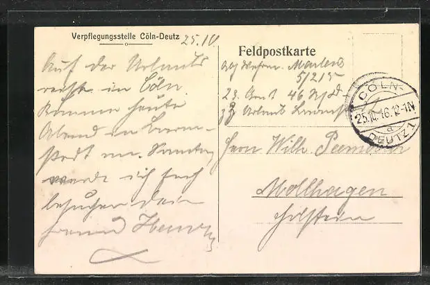 gelaufen 1916 als Feldpost, Stempelspur, guter Zustand