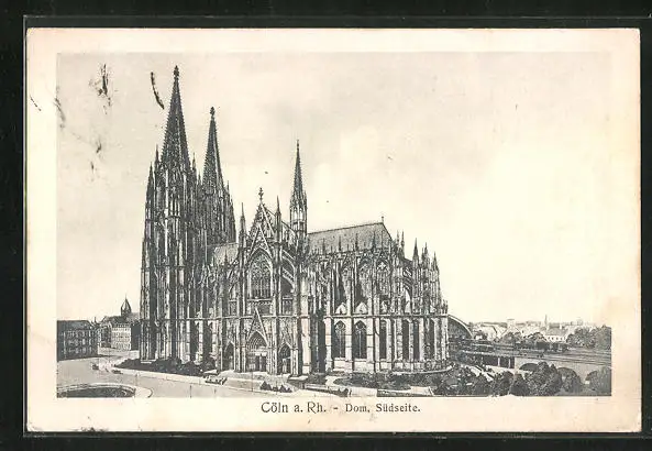 alte Ansichtskarte, gelaufen, Briefmarke entfernt, rückseitig Oberflächenschaden, Stempelspur, guter Zustand
