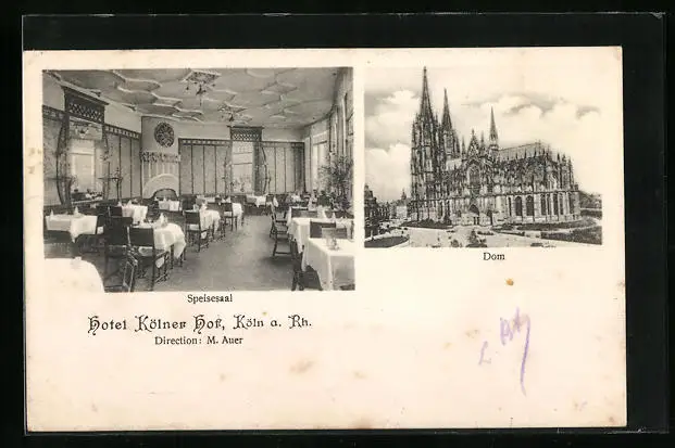 AK Köln a. Rh., Dom und Hotel Kölner Hof, Innenansicht