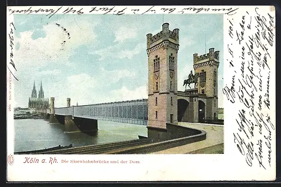 AK Köln a. Rh., Eisenbahnbrücke und Dom