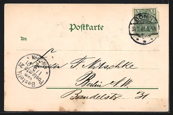 alte Ansichtskarte, gelaufen 1901, Stempelspur, guter Zustand