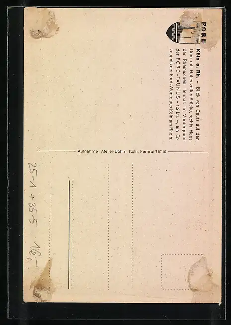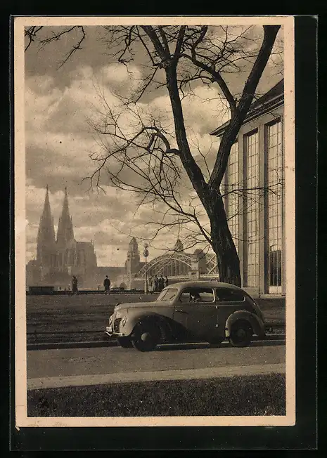 AK Köln a. Rh., Ford-Taunus am dem Dom gegenüberliegenden Rheinufer