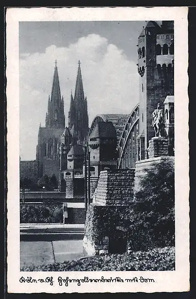 AK Köln a. Rh., Hohenzollernbrücke mit Dom