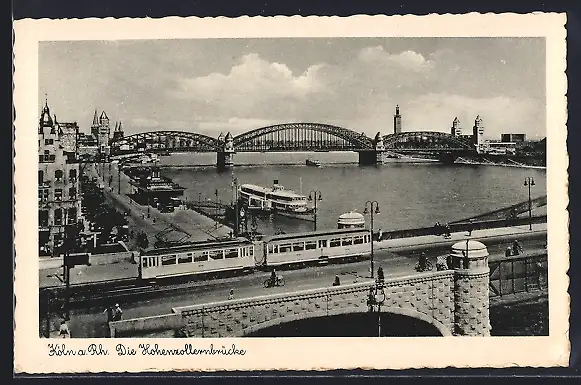 AK Köln a. Rh., Hohenzollernbrücke mit Strassenbahn
