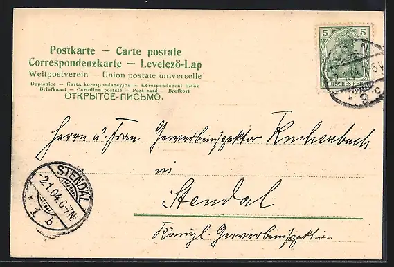 alte Ansichtskarte, gelaufen 1904, guter Zustand