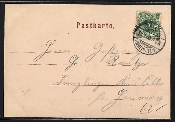 alte Ansichtskarte, gelaufen 1900, guter Zustand