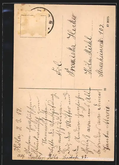 alte Ansichtskarte, gelaufen 1919, Briefmarke entfernt, guter Zustand