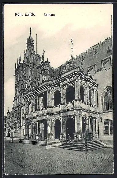 AK Köln a. Rh., Rathaus mit Strassenpartie