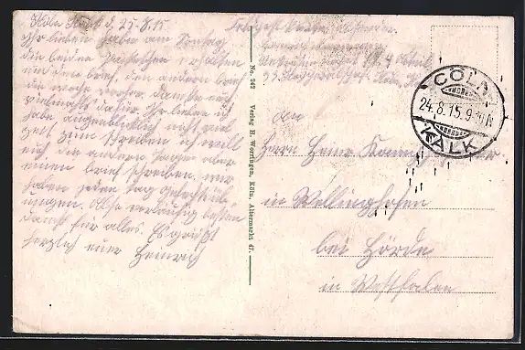 alte Ansichtskarte, gelaufen 1915, Eckknick re. unten, guter Zustand