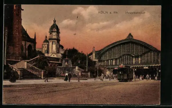 AK Köln a. Rh., Strassenbahn am Hauptbahnhof