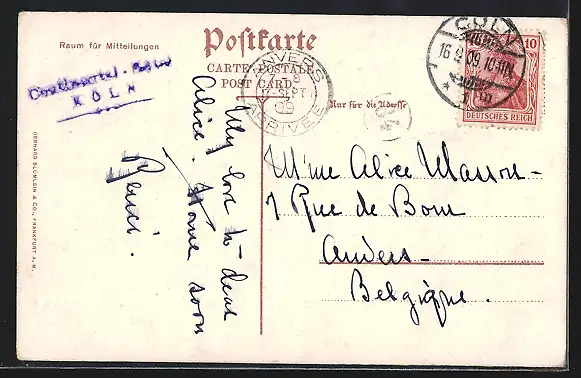 alte Ansichtskarte, gelaufen 1909, Stempelspur, guter Zustand