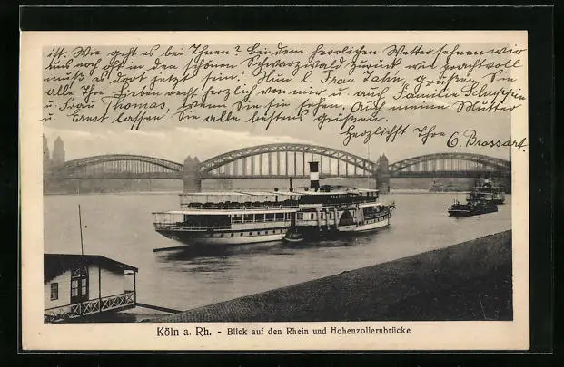 AK Köln a. Rhein, Blick auf den Rhein und die Hohenzollernbrücke