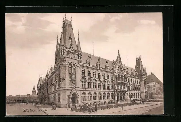 AK Köln a. Rhein, Passanten auf dem Platz vor der Post