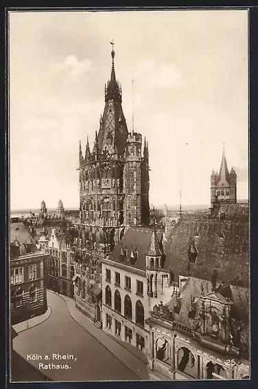 AK Köln a. Rhein, Rathaus mit Strassenpartie