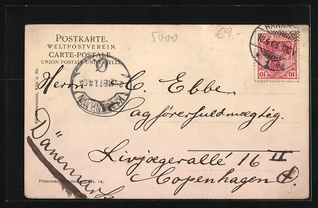 gelaufen 1905, Eckknick rechts oben, Stempelspur, guter Zustand
