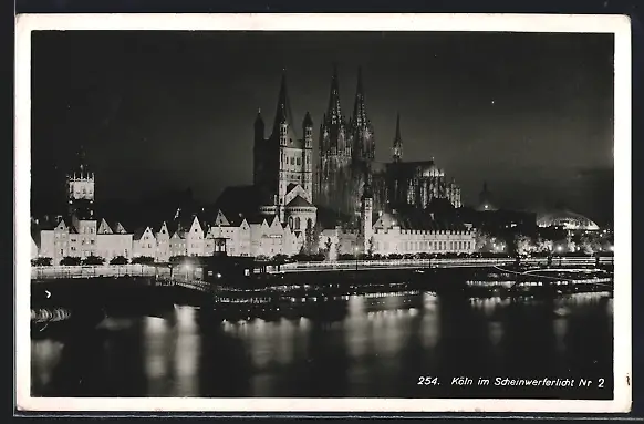 AK Köln, der Kölner Dom im Scheinwerferlicht