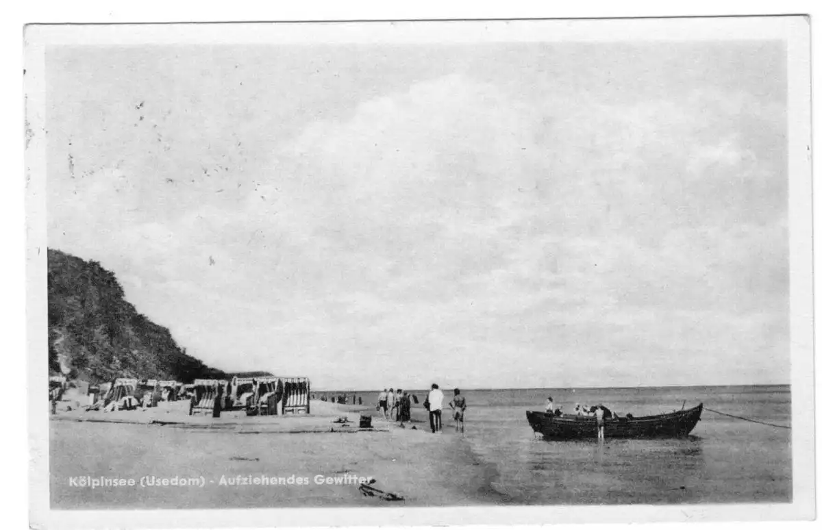postalisch gelaufen, gestempelt: Kölpinsee auf Usedom, 12.8.57