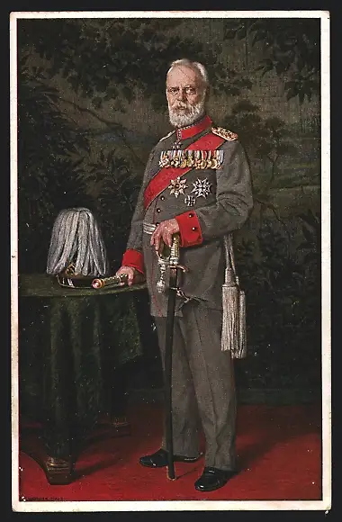 AK König Ludwig III. in Uniform und an einem Tisch stehend