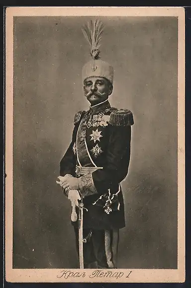 AK König Peter I. von Serbien in zeremonieller Uniform mit Säbel