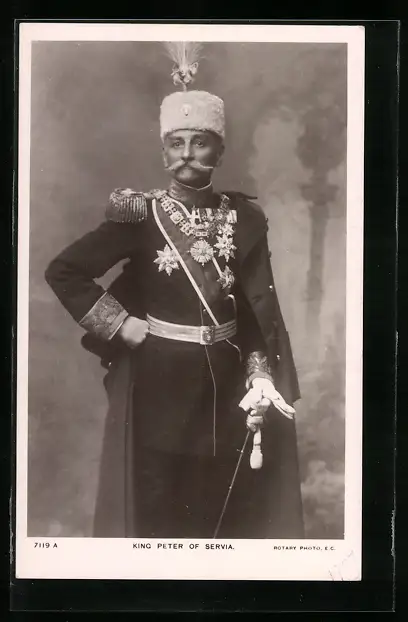 AK König Peter von Serbien in prunkvoller Uniform mit Hut