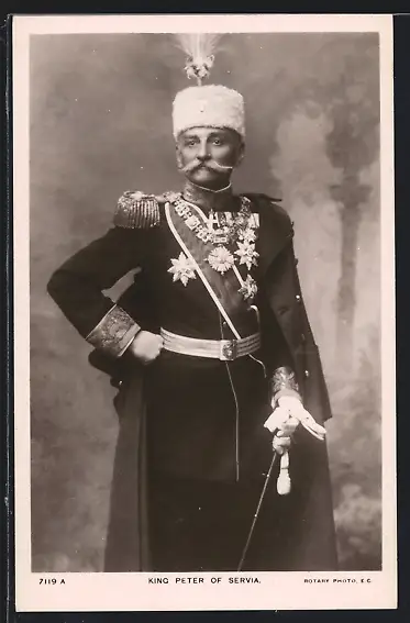AK König Peter von Serbien in prunkvoller Uniform mit Hut