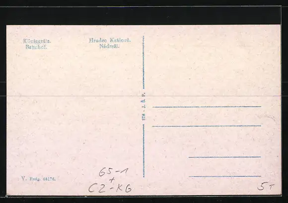 Personenbezogene Daten auf der Rückseite der Karte wurden durch blauen Textmarker unkenntlich gemacht. Die blauen Stellen sind auf die Vorderseite durchgeweicht und wirken sich negativ auf das Postkartenfoto aus