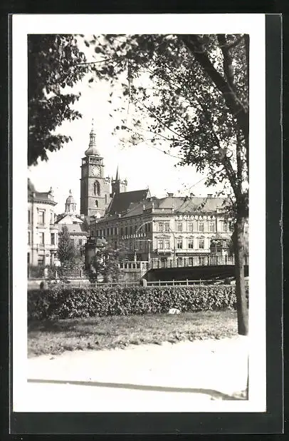 AK Königgrätz / Hradec Kralove, Ortspartie mit Turm, Legiobanka