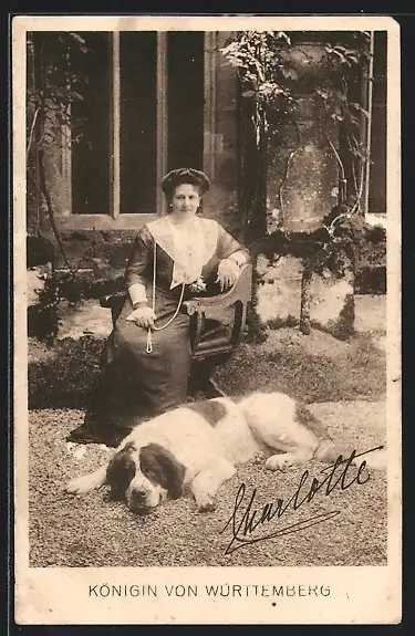 AK Königin Charlotte von Württemberg mit ihrem Bernhardiner