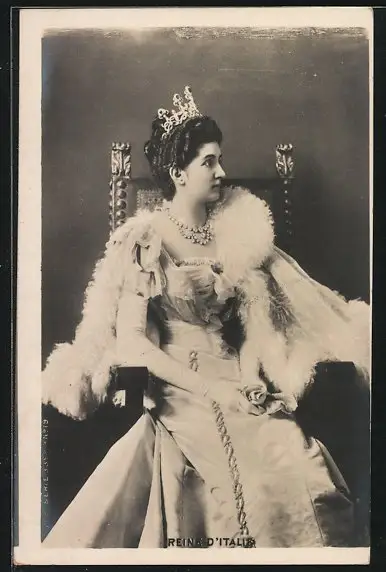 AK Königin von Italien mit Krone und Pelz