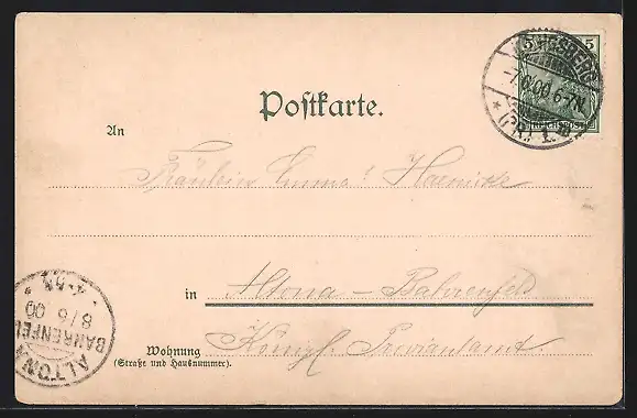 alte Ansichtskarte, gelaufen 1900, guter Zustand