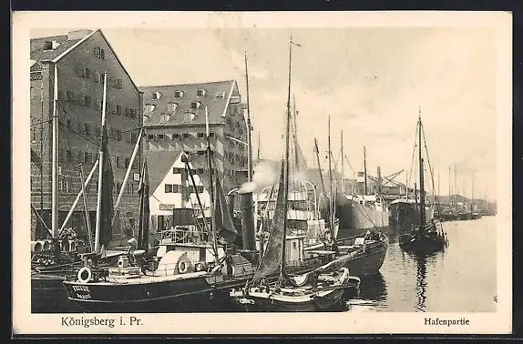 AK Königsberg in Preussen, Hafenpartie mit Blick zu Schiffen