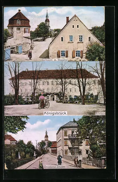 AK Königsbrück, Dresdener Strasse, Gartenstrasse mit Hospital