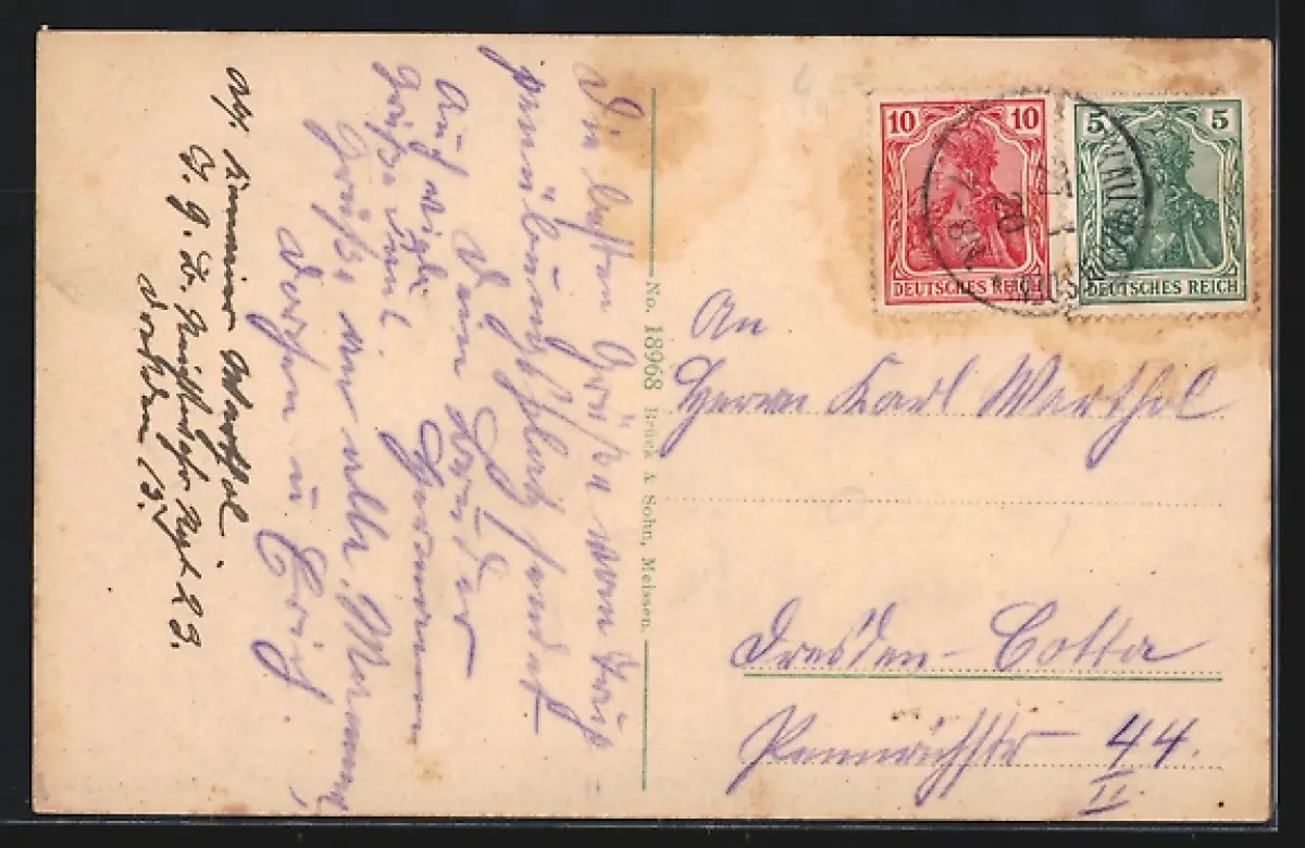 alte Ansichtskarte, gelaufen 1920, Eckknick links oben, guter Zustand
