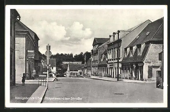 AK Königsbrück i. Sa., Hoyerswerdaer Strasse mit Geschäften