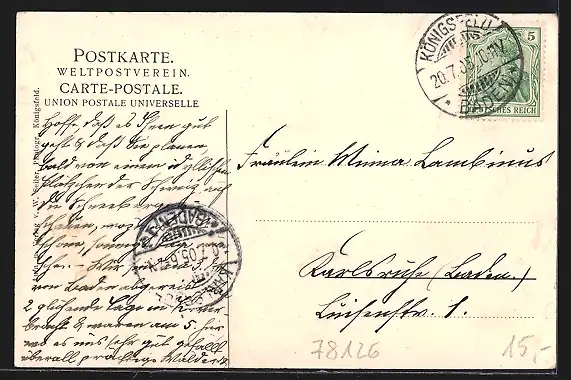 alte Ansichtskarte, gelaufen 1905, Eckknick li. oben, guter Zustand