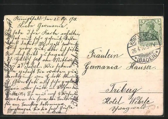 gelaufen 1910, leichter Eckbug links unten, guter Zustand